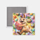 Description at a burst of pure happiness to your home with this joyful running Easter bunny decorative magnet. This high-quality square magnet features a cheerful brown fluffy bunny leaping through a Springmeadow while clutching a large pink floral patterned egg surrounded by colourful Easter baskets, nests and looning tulips against a soft rainbow sky this lively design captures the excitement of an Easter egg hunt. You can buy it as a poster for a friend to brighten their space or gift this adorable magnet to a child teacher or