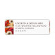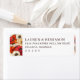 These return address labels feature a vibrant floral design with large, stylized flowers in shades of red, orange, cream, and white on the left side, creating a lush and inviting appearance. The right side offers clean, white space for easy customization with your details, using a classic serif font that enhances readability and elegance. Perfect for formal occasions, these labels exude a joyful and sophisticated mood, making them ideal for weddings or special events. The balanced composition and warm color palette ensure they add a touch of charm to any envelope.