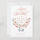 Joyous Hanukkah, skicka ditt Hanukkah önskemål till din familj och dina vänner med vårt vackra anpassade-fotokort. Vår design har vårt vackra handritade menorahljus i faux ro guld, som är dekorerat med vackra festliga blommigtar och löv. Dovar ingår också i denna vackra Hanukkah-inspirerade design. "Joyous Hanukkah" är skrivet i ett vackert och elegant kalligrafteckensnitt. Anpassa med år, namnteckning familj och lägg till ditt familjefoto på baksidan av kortet. Alla illustrationer är handritade originalbilder av Moodthology Papery.