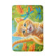 En söt orange tabb med kattunge som klistrar i en blomsterträdgård med färgstarka drakar.