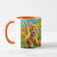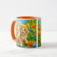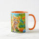 En söt orange tabb med kattunge som klistrar i en blomsterträdgård med färgstarka drakar.
