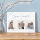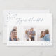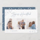 Skicka Hanukkah hälsning till vänner och familj i chic stil med våra elegant-fotokort. Designad för att rymma tre av dina favoritfoton som arrangerats sida vid sida i ett kollageformat, kortfunktionerna "joyous Hanukkah" i avslappnad-handskisserade skript med text som är adorterad med hand plockade-stjärnor i hörnen. Anpassa med din familj namn och året vid grund.