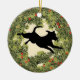 Jack Russell Terrier-silhuette tog sig ut mot en bakgrund av julkrans.