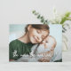 Modern julhälsningskort med handskriven typografi som säger "ju mer merrier" med ett hjärta. Det här är ett födelsemärke för julhelgerna! Lägg till foton, födelsestatus och ett meddelande!