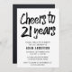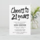 Enkel elegant svartvit 21st födelsedaginbjudan. Denna design presenterar "jubel till 21 år" skrivar i modernt borstar stilsorten på en vitbakgrund. Att redigera denna mall klicka skräddarsy vidare.