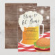 Jubel till 60 år födelsedaggrillfestinbjudan som presenterar en ölmugg- & hamburgareuppsättning på en lantlig wood bakgrund med den hängande masonburken, tänder