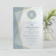 Denna enkelt utformade, moderna, geometriska 50-årsjubileum inbjudan har en dammig blå färgtema med kalligrafiska element, asymmetriska guld ram accenter och marmorerad textur utseende - anpassa textelementen för alla årsdagar eller födelsedagsfirande - av katz_d_zynes
