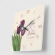 Tre rikers mörk burgundblommor av lila-tulpanblommor på en gräddbakgrund med grönt löv och anpassade namn och datum för en jubileumsgåva, särskilt ett ruby bröllop. Klockan har matchande nummer i romerska romerska siffror i burgundisk färgad. Du kan också ersätta bakgrundsbilden med ett foto av paret lycklig.