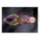En briljant färgad flytande abstrakt inramad i guld och studerad med diamanter och pärlor. Sinuösa glödande strömmar av rött, gult, grönt, blått, lila och rosa kurva jämnt, som krymper från en underbar pärla till spetsen, accentueras i slutet av en stjärnsprängning. Denna regnbåge läggs mot en bakgrund av svart silke.