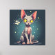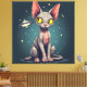 Judging Sphynx Cat UFO Space Cartoon Art Canvastryck
