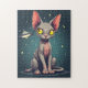 Judging Sphynx Cat UFO Space Cartoon Art Pussel