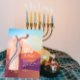 Fånga essensen av Rosh Hashanah och Yom Kippur. Denna grafiska illustration visar en judisk man som blåser i shofar, vädurshornet, mot en vacker bakgrund av berg och moln. Perfekt för att förmedla andlig förnyelse och de höga helgdagarna, det är ideal för att skapa meningsfulla ögonblick på gratulationskort och dekorationer. All text kan enkelt anpassas med din egen.
