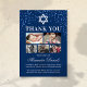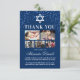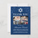 När man sörjer blir det ett nytt djup att uttrycka tacksamhet. Lägg till elegans, nåd och personlig beröring till ditt tackbudskap med vårt judiska begravningstack. Inställt mot en smakligt designad blå bakgrund, läggs kortet till med en glimmerande stjärnsymbol av David. Med plats för fem personliga foton och anpassadets sympatibudskap är det ett hjärtligt sätt att uttrycka sin tacksamhet under denna svåra tid.