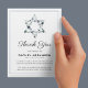Ett hjärtligt tack under era svåraste stunder med en beskuren judisk begravning tackkort. Den här tacksamhetstecknet har ett elegant, platt inbjudningskort och har en helt vit bakgrund med dubbla fodrade gräns, kompletterad med en delikatativt designad Blue Blommigt Star av David. Anpassa ditt budskap för att uttrycka din uppskattning och ge en intimt kontakt under en sörjningstid.