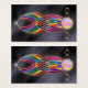 En briljant färgad flytande abstrakt inramad i guld och studerad med diamanter och pärlor. Sinuösa glödande strömmar av rött, gult, grönt, blått, lila och rosa kurva jämnt, som krymper från en underbar pärla till spetsen, accentueras i slutet av en stjärnsprängning. Denna regnbåge läggs mot en bakgrund av svart silke.