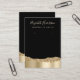 Chic och elegant svart smyckeskort med visning av guld faux foil utdragen i guld faux glitter. På framsidan flyttar eller tar du bort markörerna för örat hål och anpassar dig med ditt namn i ett skript för contemporary light guld och en beskrivning av ditt smycke i enkel modern typografi. På den motsatta sidan lägger du till affärskortet, t.ex. e-post, social-mediehandtag, webbplats osv.