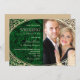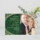 Lyx, vintage, elegant, juveltoner, inbjudan till grönt med vintage guld ram och foto av brud och groom.