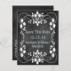 Jugend krita tavla Spara datum vykort. Grafisk design inkluderar vita blad och vinrankor. Vykortet har en jugendfärgsättning. Använd för bröllop, årsdag, födelsedag, överraskningsfest, examen, välgörenhetsevenemang, sälj event, auktion, bankett, trädgårdsfest, prisceremoni med mera.