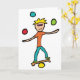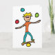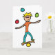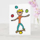 Slagande tre bollar och balansering på en rola bola board - en cirkusjuggler med stil och färdigheter.