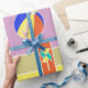 El papel de regalo presenta un diseño alegre perfecto para regalo. Está adornado con una composición de rectángulos de diversos colores que se entrelazan de manera armoniosa, creando un patrón visualmente atractivo y dinámico. Cada uno de estos rectángulos está cuidadosamente decorado con dibujos de juguetes ,que van desde osos de peluche y coches de juguete hasta muñecas y trenes.