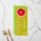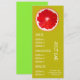 En färgrik och söt meny mall för en dryckesbar, juicebar, fruktbutik eller hälsokostbutik. Denna söta meny har en söt originalkonst illustration av Sacha Grossel av en Grapefrukt skiva med en citrus tema mot en lime och gul anpassningsbar bakgrund. Texten kan anpassas för att passa dina behov.