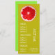 En färgrik och söt meny mall för en dryckesbar, juicebar, fruktbutik eller hälsokostbutik. Denna söta meny har en söt originalkonstillustration av Sacha Grossel med en grapefrukt skiva med citrus tema mot en lime och gul anpassningsbar bakgrund. Texten kan anpassas för att passa dina behov.