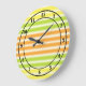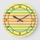 Orange- och väggklocka och tidsnummer med saftig citrus Citrus Lemon Lime and kant-Ränder teckningsbild från TheFabricSeal i Zazzle är en färgstark roligt som tydligt illustrerar färg av citrusfrukter av citrusfrukter av citron, kalk, orange och vitt med fet insida och mjuk pastel av vågrät, lodrät och lutad rand som upprepar mönster. Perfekt för att göra ditt liv, hem, kläder, elektroniktillbehör etc. ljusare. Underbar utformning när som helst under året, särskilt för säsong vår och sommartid.