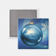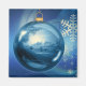 Grafik med blå julklapp boll, dekorerad med vinterlandskap