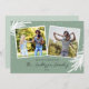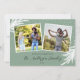 Det här 2-fotojulkortet är accentuerat med vergröna grenar i vitt. Gröntens bakgrund med vit fallande snö.