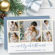 Modern calligrafi-skript God jul 5-fotokort - Guld Ramar - Dusty Blue - Helgdag