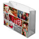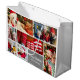 Fira julhelgen med denna moderna, personlig presentväska. I presentväskan finns det plats för sju av dina favoritfoton i familjen. Det finns också ett område med silver grått-bakgrund och hälsning God jul (som kan redigeras) och din familj namn.