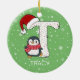 Jul Alphabet T Santa Hat Penguin Snowflake Julgransprydnad Keramik