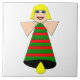 Den här fantastisk-plattan har en söt julängel med blont hår, blått öga och ett stort leende. Hennes kropp är en festlig grönt och röd färgad med en gult klappare vid grund.