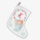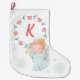 En söt julängel med rosa blommor, monogram och blått snöflingor.