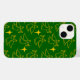Den här telefonväskan har en juldesign av änglar och stjärnor som är spridda över designen på gröntens bakgrund.