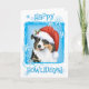 Skicka julhälsningar med ett kort från lycklig Australian shepherd med en julhatt omgiven av snöflingor och ord, Lycklig Howlidays! Underbar för Aussie-älskande familj och vänner. Ha en Lycklig Howliday!