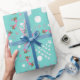 Kustjulen är papper på en rulle. Kvalitet, högklassig presentförpackning har en unik design med flamingos, sanddollar och stjärnfisk som är tryckt på en mint grönt färg. Julgran bilder består av vit stjärnfisk med sandbas. Rosa flamingos med festiv helgdag omger vit träd av stjärnfisk med sanddollarbas.