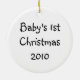 Ett baby med ett boskapshölje och helgdag bollar med text som lyder "glädje" på ett prydnadsföremål som du enkelt kan anpassa för baby 1:a jul.