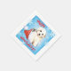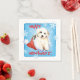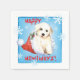 Fira julhelgen med en söt bichon Frise-marionett sitta i en julhatt mitt i snöflingor och ord, Lycklig Howlidays!