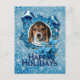 Detta är härlig jul semestrar designen kallad blåttsnöflingor som presenterar en Beaglevalphund som jag har fotograferat.