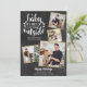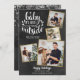 En elegant boho 4 foto collage semesterdesign för dig att anpassa med dina favoritbilder ramade i guld, meddelande, namn och år på en kritttavla bakgrund. Baksidan har fallande snöflingor på en matchande kritttavla bakgrund. Designad av Thisisnotme©