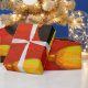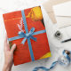 Linen Jul Wrapping Papper till salu. Jul bollar hänger på Julgran på röd bakgrundsmålning på Wrapping papper.
