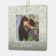 Ditt favoritfoto på vita löv, bär och prickar och ANY FÄRG-bakgrund (vi visar svart). Byt ut ord KÄRLEK mot något! TIP: Placera texten mellan fyrkanterna om du vill behålla textdekorationerna - överför en hög upplösning, ett foto som beskurits till fyrkantig form. Denna julprydnad är en minnesvärd gåva till familj och vänner eller skapar bara för dig själv. Dubbla - lägg till information på baksidan eller ta bort exempeltexten.