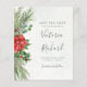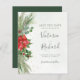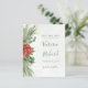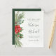 Vackra prisvärda Spara datum-kort med handmålade botaniska akvarellillustrationer av vintergrönska, tall- och granbarr, kottar och järnektsbär. Perfekt val för jul- och högtidsinspirerade bröllop.