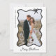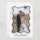 De här helgdagskorten med chic och snyggt, svartvitt och svartvitt, innehåller ett favoritfoto i ett trendig svart vågigt ram med en viskbuk, på en elegant vit bakgrund. Modern manus säger "God jul" och det finns utrymme för ett personligt budskap på baksidan.