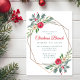Elegant Julbrunch-inbjudan med vattenfärgade buketter av säsong blommigt, bär, holly och greenery på guld koppargeometriska ram. Anpassa enkelt händelsetypen (brunch, middag, te osv.) och andra händelsedetaljer i moderna skript och typografi för rött och grönt.
