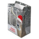 Stor buck hjort med Jultomten hatt i vinterskogen med snöflingor. Text kan redigeras.