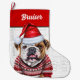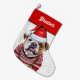 Jul Bulldog med Namn Woof Background Stor Julstrumpa