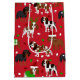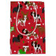 Cute Cavalier Kung Charles Spain hundar, klädd i festliga helgdag, jultomter och glasyssare med utspridda julprydnader.