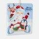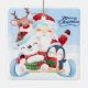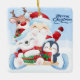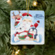 Den här keramiska julprydnaden visas i kvadratisk form med en festlig helgdag Santa och vänner tryckt. Anpassa det här objektet eller köp som det är.